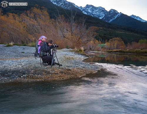 “ Nếu bạn muốn chụp hình trong khi với 1 đứa trẻ trên lưng, chắc chắn bạn cần có một chiếc giá đỡ thoải mái cho cả bé và cha mẹ”