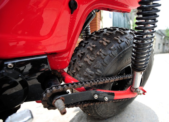 Để vận hành chiếc xe với cặp lốp cồng kềnh này, anh Quốc Anh - người trực tiếp độ xe đã phải thay động cơ nguyên bản sang động cơ của xe Wave 110.