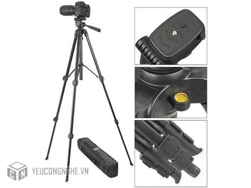 Chân máy được làm từ hợp kim nhôm, có tải trọng tối đa 2.5 kg.
