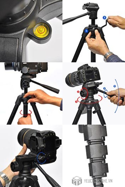 Phần đầu tripod có khả nắng xoay 3 hướng linh hoạt 360 độ giúp bạn có thể dễ dàng điều chỉnh góc chụp sao cho phù hợp.