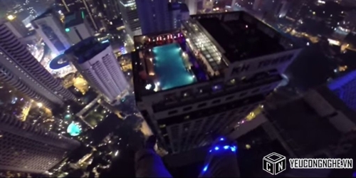 Video được quay bằng 1 chiếc camera GoPro giúp người xem có thể cảm nhận được độ cao khủng khiếp- 1099 feet.