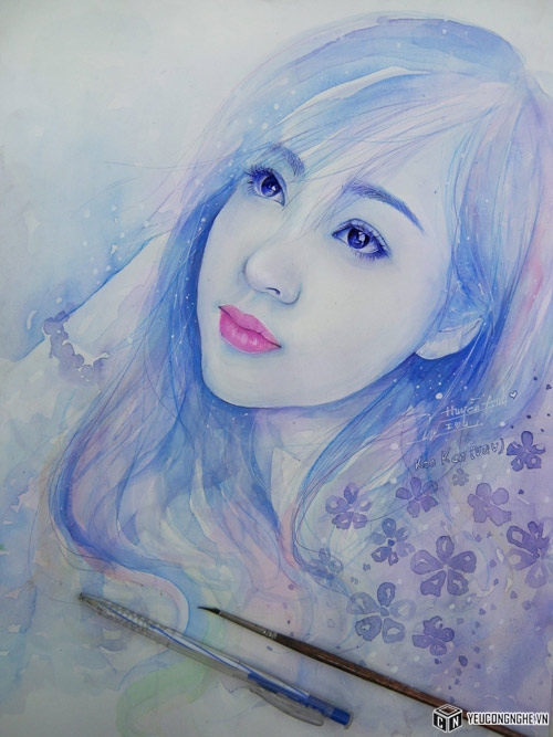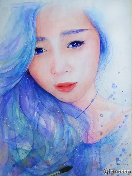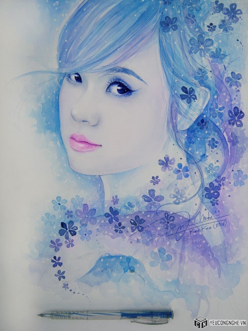 Võ Quốc Vẹn vẽ tranh truyền thần đẹp long lanh bằng những chiếc bút bi đơn giản kết hợp màu nước.