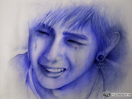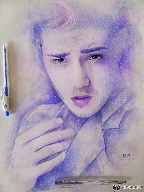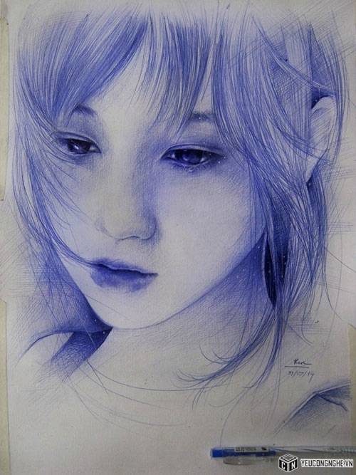 Bức tranh đầu tiện Vẹn vẽ bằng bút bi