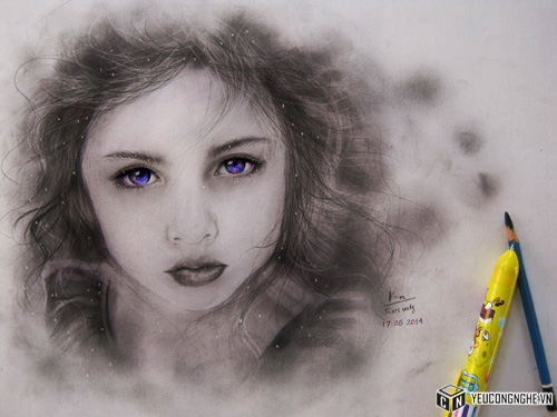 Bức tranh vẽ Lê Thị Huyền Anh (Bà Tưng) đẹp như thật