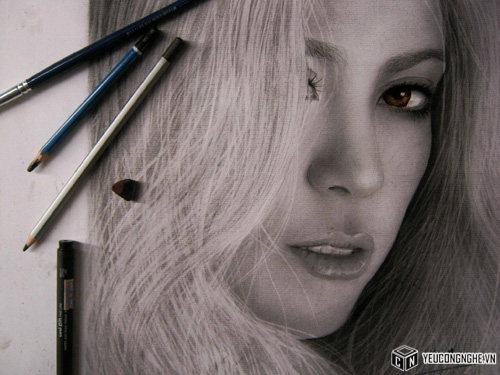 Bức tranh Vẹn vẽ thần tượng là ca sỹ Shakira