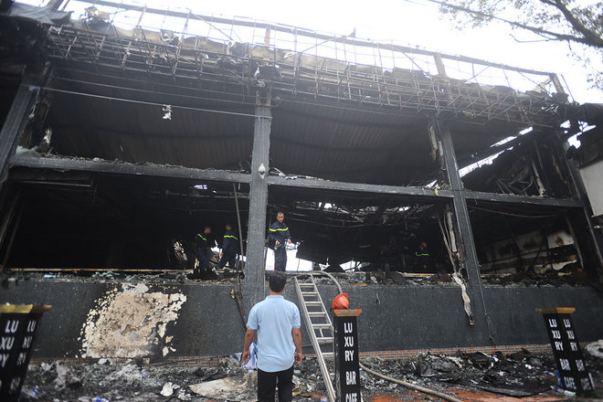 Hơn 2 tiếng chìm trong lửa, bar Luxury (153 Yên Phụ, Tây Hồ) - điểm hẹn khá nổi tiếng của dân chơi Hà thành - bị thiêu rụi.