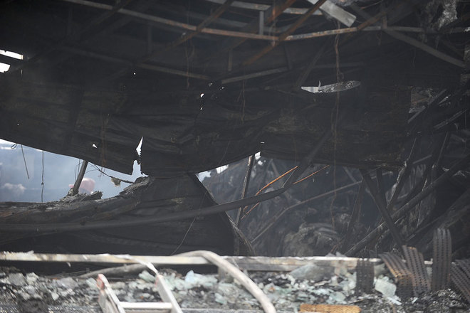 | Phần tầng trên của quán bar bị lửa thiệu rụi, chỉ còn trơ khung sắt. Ảnh: Đức Lê. |