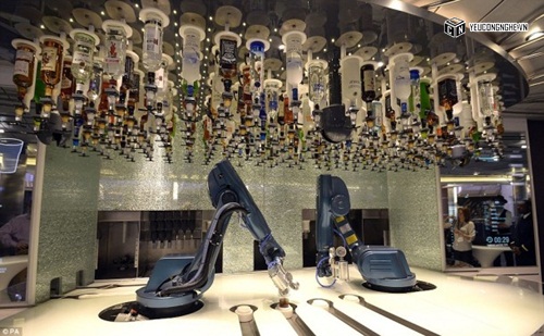 Điều đặc biệt hơn ở du thuyền này là nó được trang bị hai bartender robot mang tên B1-0 và N1-C. Hai chú robot này được thiết kế bởi Carlo Ratti và Makr Shakr của phòng thí nghiệm MIT Senseable. Rất nhiều loại cocktail được pha chế bởi đôi tay điện tử linh hoạt, chính xác, tinh tế của robot Makr Shakr. Những bartender robot này rất khủng tuy nhiên chúng bị hạn chế di chuyển tới quầy bar cũng như bưng đồ uống cho khách.