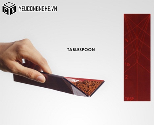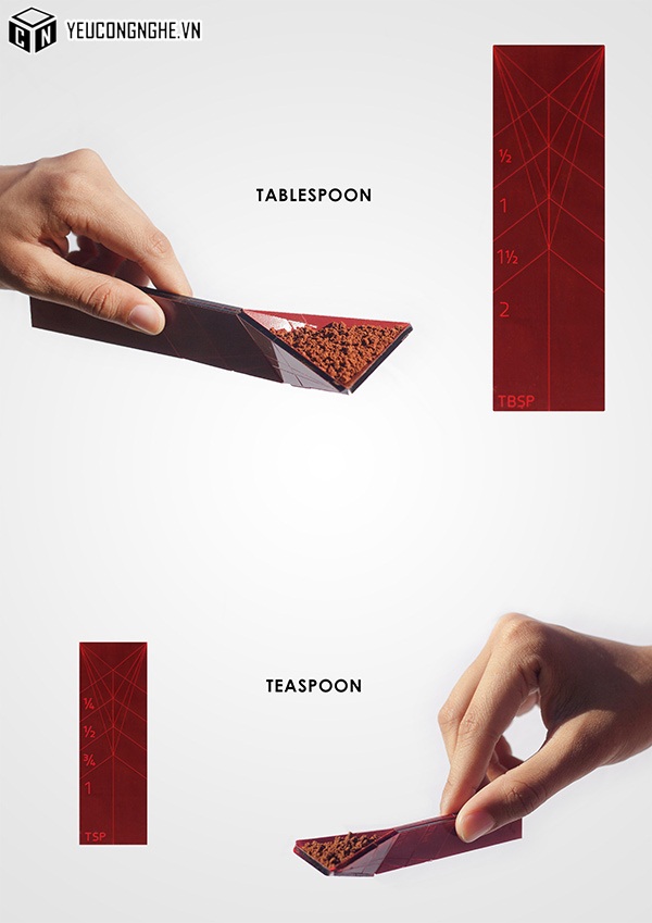 Đó là một polypropylene phẳng được đính bản lề tại nhiều điểm và thiết kế này cho phép nó có thể tạo thành 4 loại thước đo đặc biệt. Các phép đo nó có thể hỗ trợ vô cùng đa dạng: từ một muỗng cà phê tới hai muỗng canh.Và tất cả phụ thuộc vào cách bạn gấp nó lên. Bạn không cần phải là một chuyên gia trong origami để quen với điều này. Quá trình này là dễ dàng như giữ bên của dải dây và ép. Khối lượng khác nhau phụ thuộc vào chỗ bạn đang cầm các dải và ép nó. Các nếp gấp của từng cách đo vô cùng chắc chắn để bạn có thể sử dụng với chất lỏng hoặc bột.