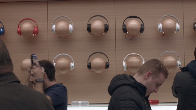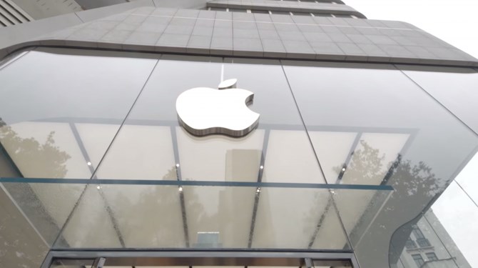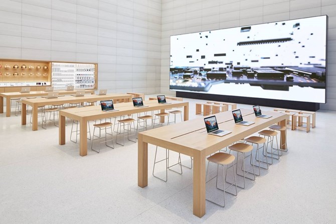 Có 1 màn hình lớn ở mặt bên của Apple Store.