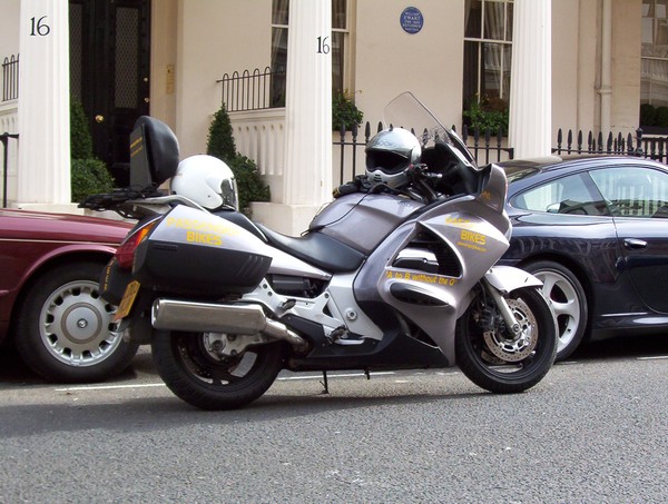 Một tài xế đang lái chiếc BMW K1600GTL, Đội xe ôm tại Nga do khách sạn Kempinski Moika 22 và hãng BMW chung vốn đầu tư.
