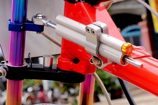 Trợ lực Ohlins hàng hiệu được gắn trên chiếc Honda Cup này.