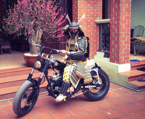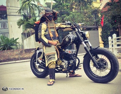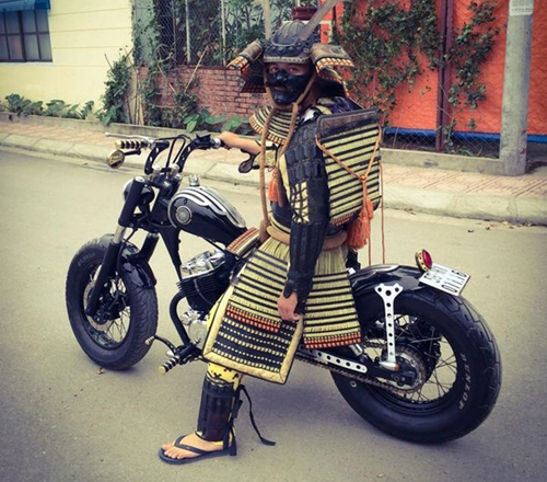 Trong trang phục của một võ sĩ Samurai, một biker nổi tiếng với phong cách lạ lẫm ở Hà Nội đã trình diễn chiếc môtô phân khối lớn quanh đường hồ tại Gia Lâm. Sự kết hợp giữa chiếc môtô Rebel 250 độ mang phong cách hoài cổ ở Mỹ và bộ trang phục đúng hình ảnh, tinh thần võ sĩ đạo nặng gần 15 kg đã thu hút mọi ánh nhìn từ những người đi đường. Hình ảnh và video đang là chủ đề được bàn luận nhiều trên mạng xã hội.