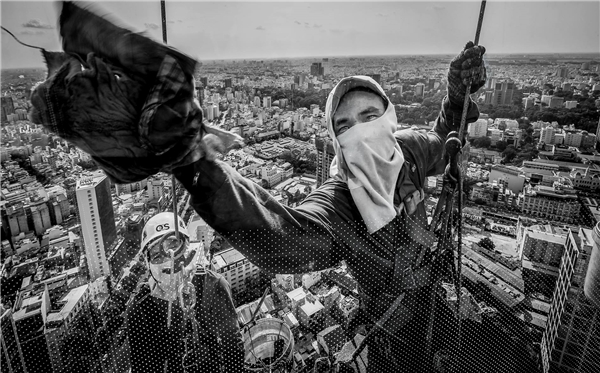 Ảnh 3: Người lau kính trên sợi dây - Huỳnh Dũng