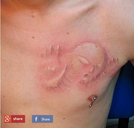 Hình xăm trên khiến chúng ta cứ ngỡ những mảng da trên người của cô gái đang bị tách ra.