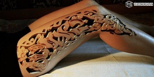Với hình xăm 3D này, bạn cứ ngỡ là những hoa văn trên đã được khắc trực tiếp vào chân cô gái.