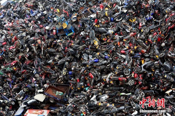 Toàn cảnh nghĩa địa ô tô xe máy của thành phố Hàng Châu.