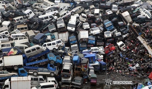 Một lượng lớn những chiếc ô tô xe máy hết hạn đăng kiểm được chất cao như núi. Đa phần chúng sẽ trở thành phế liệu, chỉ một số ít các phụ kiện còn sử dụng được đem đi tái chế. Các công nhân ở đây hàng ngày phải mổ xẻ chúng từng chiếc một để phân loại. Lượng công việc hàng ngày của các công nhân làm việc tại đây quả thực vô cùng lớn.