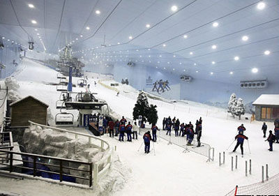 Khu trượt tuyết trong nhà lớn nhất thế giới: Giữa sa mạc hoang hoá và khô cằn, một khu trượt tuyết nghỉ mát trong nhà cung cấp cơ hội tuyệt vời để bạn ngắm nhìn tuyết quanh năm trên diện tích 22.500m2. Nằm trong trung tâm thương mại Mall of the Emirates, nó có một ngọn núi tuyết trong nhà cao 85m cùng 5 làn trượt. Ngoài ra, nó còn có một công viên tuyết trong nhà lớn nhất thế giới.