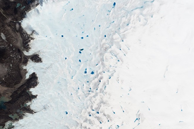 Vào mùa xuân, những hồ nước xanh xuất hiện ở phía tây nam Greenland khi tuyết tan.