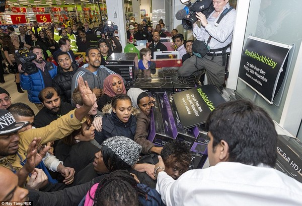 Cảnh tượng nhiều khách hàng bò lăn ra đất để ôm, giằng đồ trong ngày Black Friday tại Anh khiến nhiều người vô cùng ngạc nhiên.