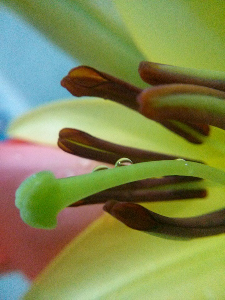 Bức ảnh vô cùng tinh tế và độc đáo. Tác giả tập trung vào một cánh của nhụy hoa màu xanh ngọc tuyệt đẹp. Sử dụng ống kính macro 12.5, nhụy hoa phô hết được vẻ đẹp tươi non đầy sức sống của nó. Ảnh chụp bằng điện thoại LG LTE2.