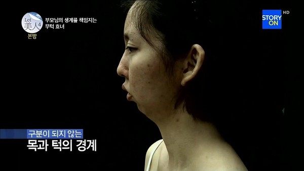 Trong số những trường hợp khó khăn có ngoại hình đặc biệt cần được phẫu thuật thẩm mỹ trong chương trình Let's Beauty có lẽ trường hợp của "cô gái không cằm" Kim Hyo Jeong (28 tuổi) đến từ Hàn Quốc là khiến người xem cảm thương hơn cả.