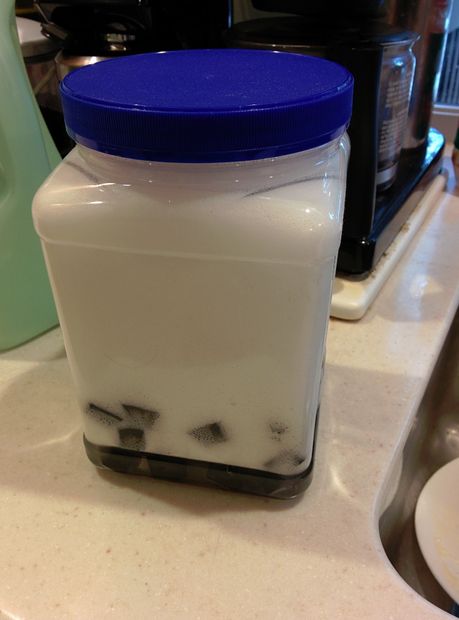 Bước 4: Lấy một cái xô (hay chậu cũng được), đổ cái hỗn hợp trong hộp kia vào đấy. Sau đó hãy sử dụng nước sạch để xả hết cái dung dịch tẩy rửa kia. Hãy làm cho sạch nhé, đừng để một chút bọt nào bám lại trên phím bấm của bạn.
