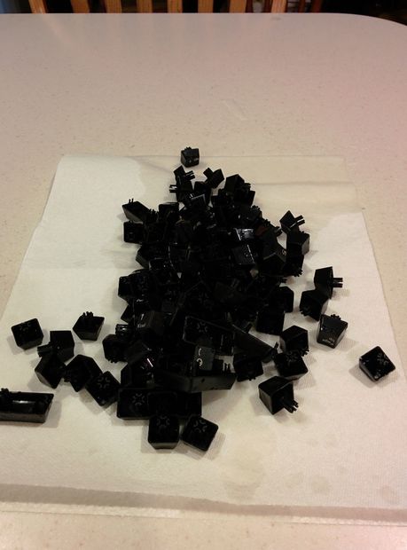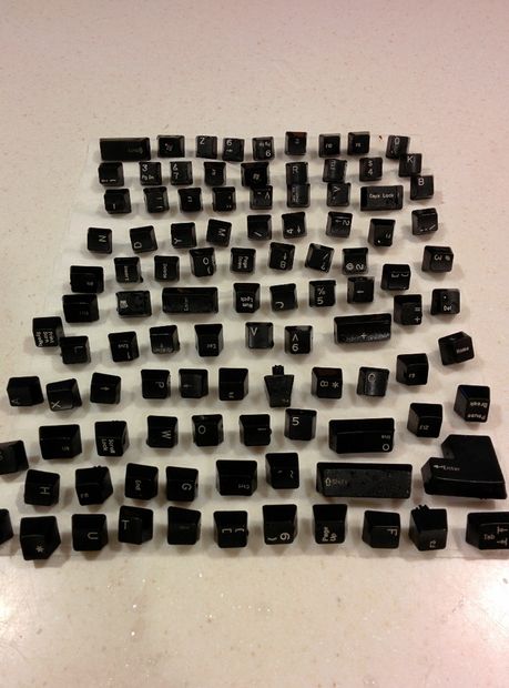 Bước 7: Giờ là lúc để bạn trả lại mọi thứ về bước ban đầu. Hãy lấy những phím bấm đã được làm sạch ở trước và lắp lại vào bàn phím của bạn. Còn nhớ tôi đã dặn bạn phải chụp ảnh bàn phím rồi chứ? Hãy sử dụng nó để làm quy chiếu cho việc lắp các phím bấm của bạn. Và hãy bắt đầu từ các phím kích thước lớn, chúng sẽ đòi hỏi không gian lớn hơn cho việc lắp ráp.