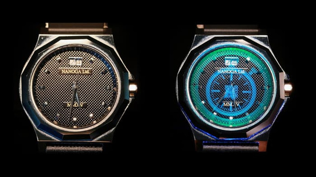 Công ty Nanoga đã phát triển thành công quy trình đưa các lớp quang tử nano mỏng hơn tóc người 10.000 lần lên mặt kính sapphire hoặc các loại kính khác trên đồng hồ, các lớp quang tử nano này sẽ được in thành hình ảnh hologram có độ chi tiết cực cao bằng cách sử dụng kỹ thuật in thạch bản.