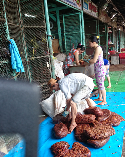 Hình ảnh này được độc giả Minh Tri ghi lại lúc 7h30 ngày 16/9 tại một cửa hàng bán me ở chợ Đầu mối Nông sản Thủ Đức (TP HCM). Trên thị trường, những loại me này thường được dùng để nấu canh chua, làm mứt và gia vị cho nhiều món ăn khác nhau.
