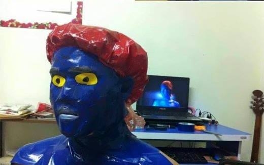 Với băng dính xanh, 1 cái mũ trùm đầu là bạn đã có thể trở thành cô nàng Mystique trong bộ phim X-men.