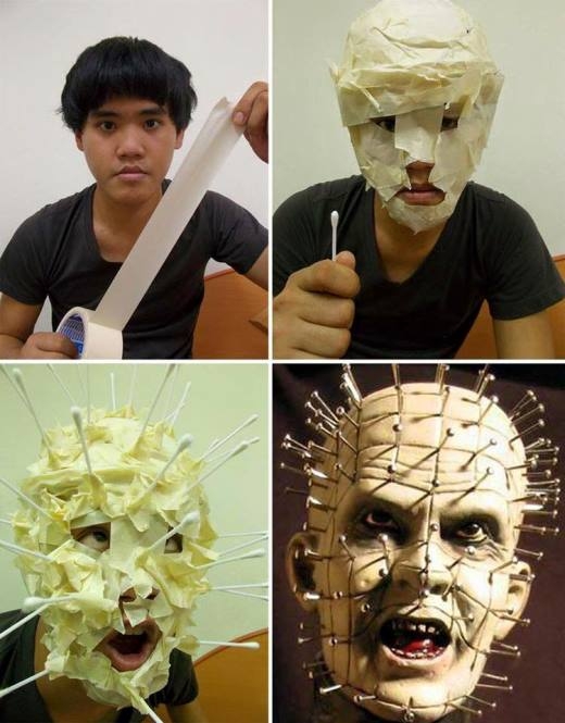 Chỉ cần 1 cuộn băng dính, vài chiếc bông ngoáy tai là bạn đã có thể biến thành Ma đinh "kinh dị".
