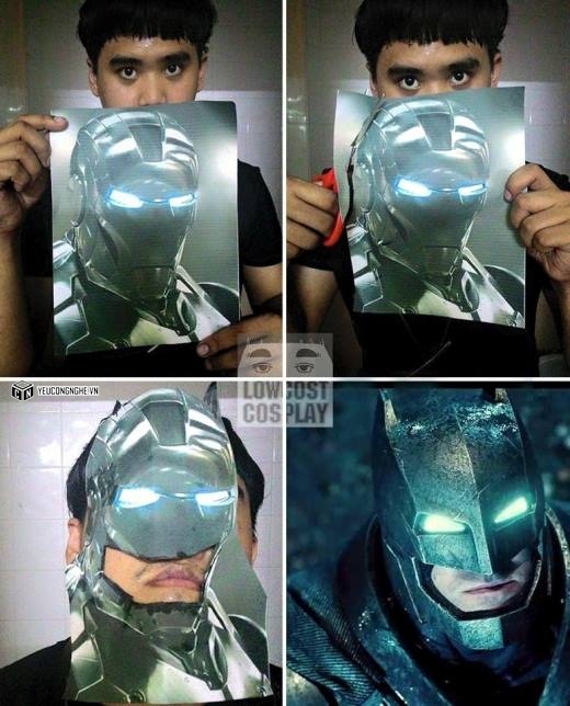 Chỉ với tấm hình Iron Man, chàng thanh niên đã "biến hình" thành siêu nhân Người dơi. Quá sáng tạo.
