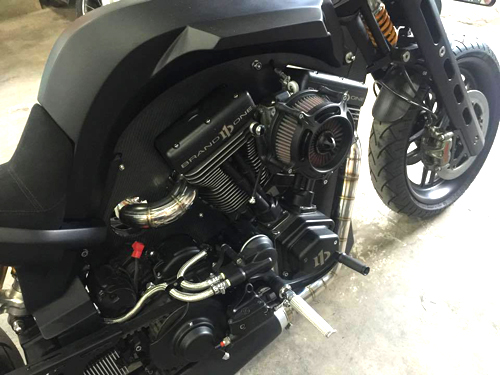 Ngoài ra, xe còn có đèn pha mang kiểu dáng mặt nạ samurai, đồng hồ Motogadget nhận diện bằng chip, bánh lớn 300 mm cùng ống xả hàng độ sau khi về Việt Nam. Động cơ xe là loại V-twin dung tích 2.100 phân khối.