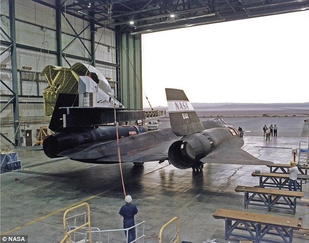 Một trong 32 phi cơ SR-71 do NASA sở hữu. Nó đang chuẩn bị bay thử nghiệm. |