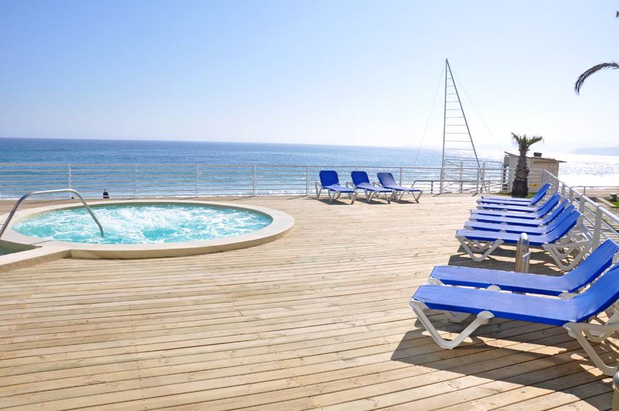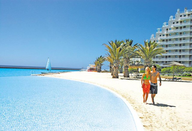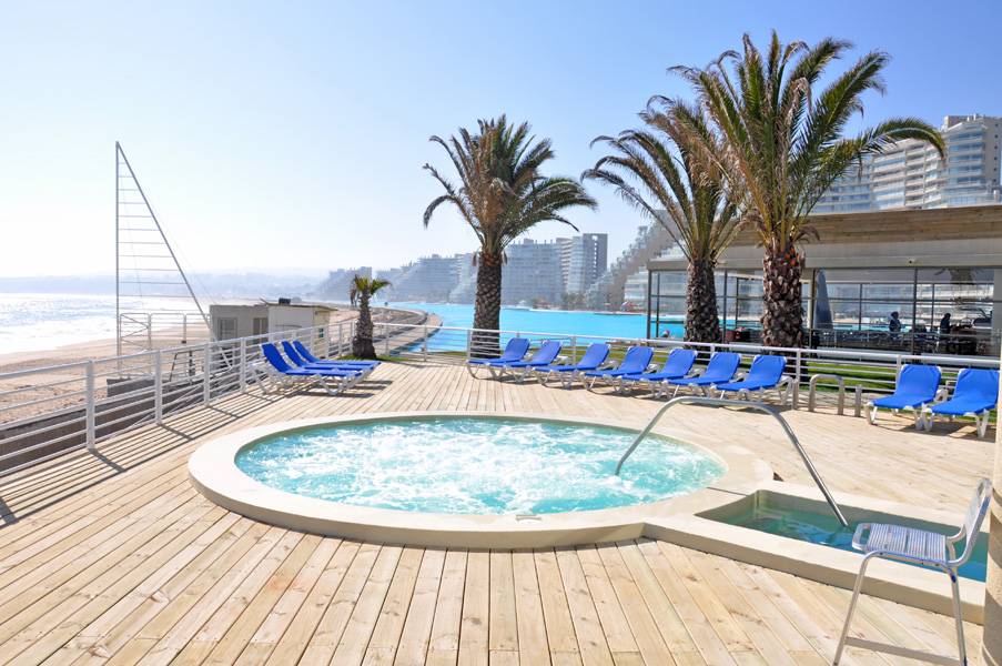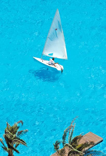 Vào mùa hè, nước trong bể bơi luôn được duy trì ở nhiệt độ 26 độ C, cao hơn 9 độ so với nhiệt độ nước biển. Giáp với bể bơi là bãi biển nhân tạo dẫn về các tòa nhà trong khu nghỉ dưỡng.