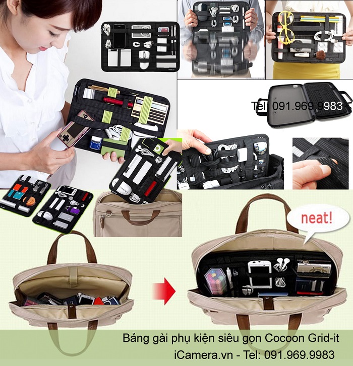 - Dòng sản phẩm Grid-It của Cocoon thật tuyệt vời. Chúng được thiết kế theo dạng một loạt các dây chun đan xen nhau, cho phép bạn gài rất nhiều loại thiết bị cùng lúc một cách vô cùng linh hoạt.