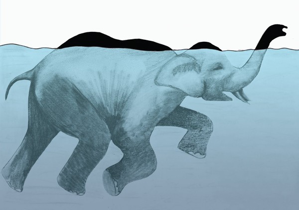 Có thể bạn không biết nhưng voi bơi rất giỏi và lúc chập tối là khoảng thời gian chúng xuống nước. Khi voi bơi dưới nước, vòi của chúng đưa lên mặt nước làm ống thở.