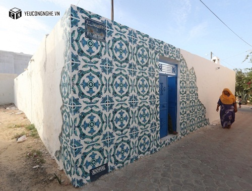 Tường, cửa sổ, cửa ra vào, cửa và các mặt phẳng khác được bao phủ bằng một loạt lớn các bức tranh tường, nhiều trong số đó đã được lấy cảm hứng từ di sản phong phú của Erriadh, một trong những làng cổ nhất ở Tunisia.