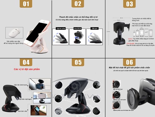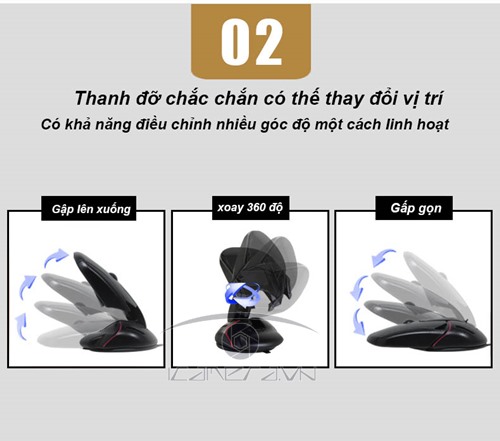 - Thanh đỡ chắc chắn, góc quay 360 độ linh hoạt, dễ dàng xoay chuyển khi lái xe