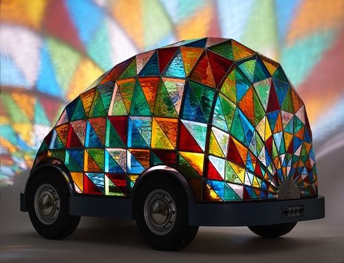 Những mảnh thủy tinh thủ công tỉ mỉ đã được kết thành một tấm kính phía trên tạo nên một bức tranh màu đẹp mắt. Theo các nghệ sĩ thiết kế, "Chiếc xe được kết hợp cách làm thủ công của của thủy tinh với công nghệ hiện đại và tương lai để tạo ra một cách vận chuyển mới vào giữa thế kỷ 21."