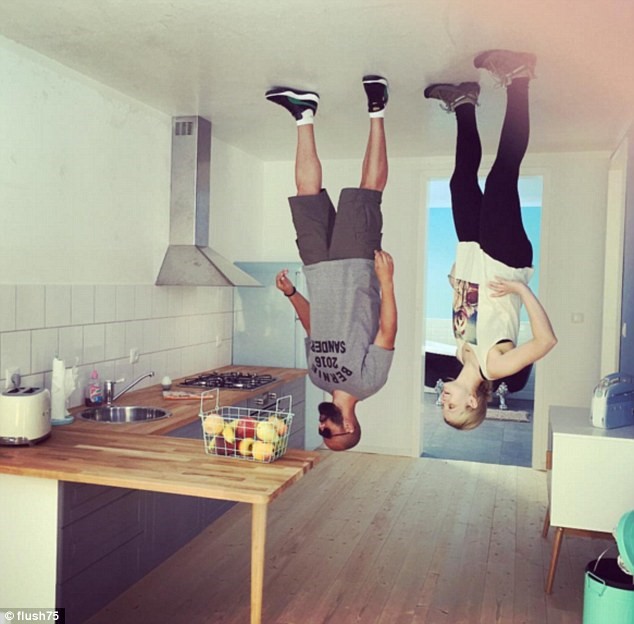 Thiết kế lộn ngược cho phép du khách tạo dáng chụp ảnh bình thường nhưng có hiệu ứng như đang đứng trên trần nhà khi xoay ngược ảnh.