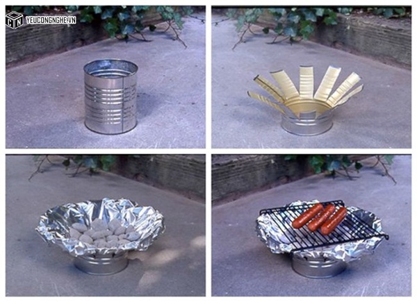 10. Nếu bạn muốn có một món nướng nhưng lại không có lò nướng, bạn có thể tạo ra một cái bếp nướng với 1 lon nhôm