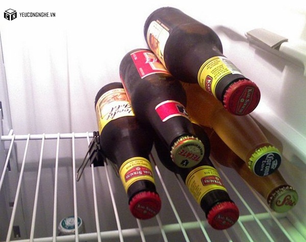 8. Bằng cách sử dụng một cái kẹp giấy trên lưới tản nhiệt của tủ lạnh, bạn có thể xếp gọn những chai bia mà không sợ bị chiếm nhiều diện tích.