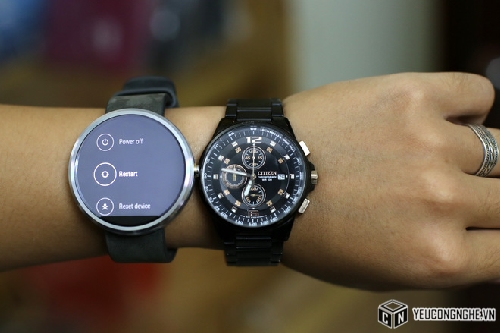 Mặt đồng hồ Moto 360 lớn nhưng hơi dày so với đồng hồ thông thường.