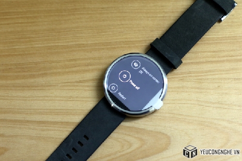 Phím bấm duy nhất ở cạnh đồng hồ còn đóng vai trò phím nguồn, Moto 360 sẽ rung lên khi có thông báo và dùng micro để ra lệnh bằng giọng nói.