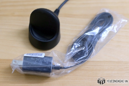 Các phụ kiện đi kèm với Moto 360 rất đơn giản khi chỉ có dock, cáp và củ sạc.