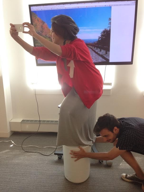 Đội luôn cả mũ bảo hộ và phải dùng tới "dụng cụ hỗ trợ chiều cao" - xem ra cũng đầu tư đấy chứ!