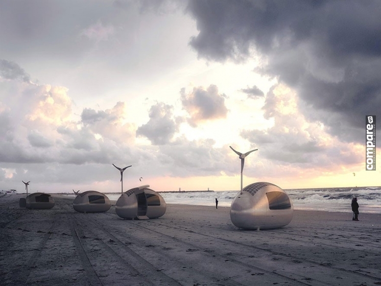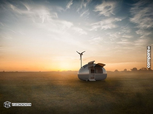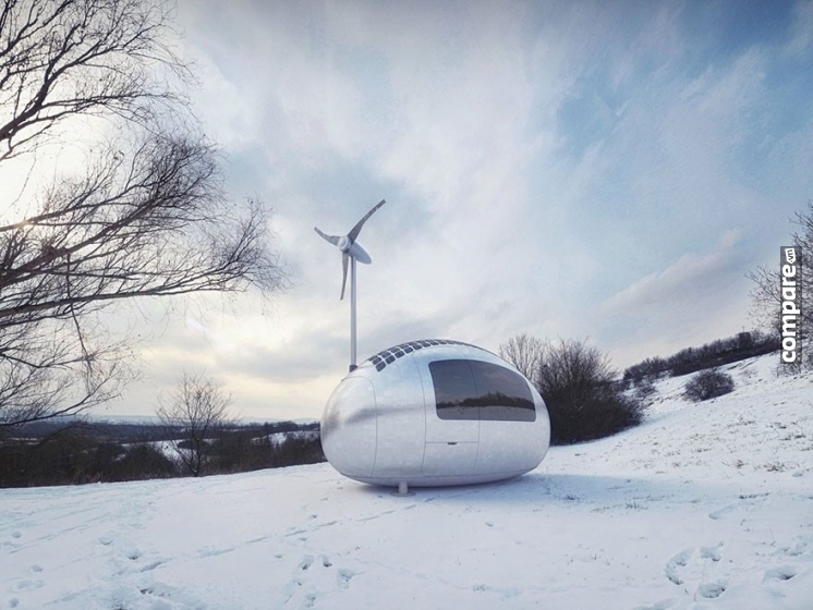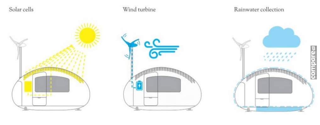 Các căn nhà Ecocapsule dựa vào năng lượng gió, năng lượng mặt trời, và thu thập cả nước mưa